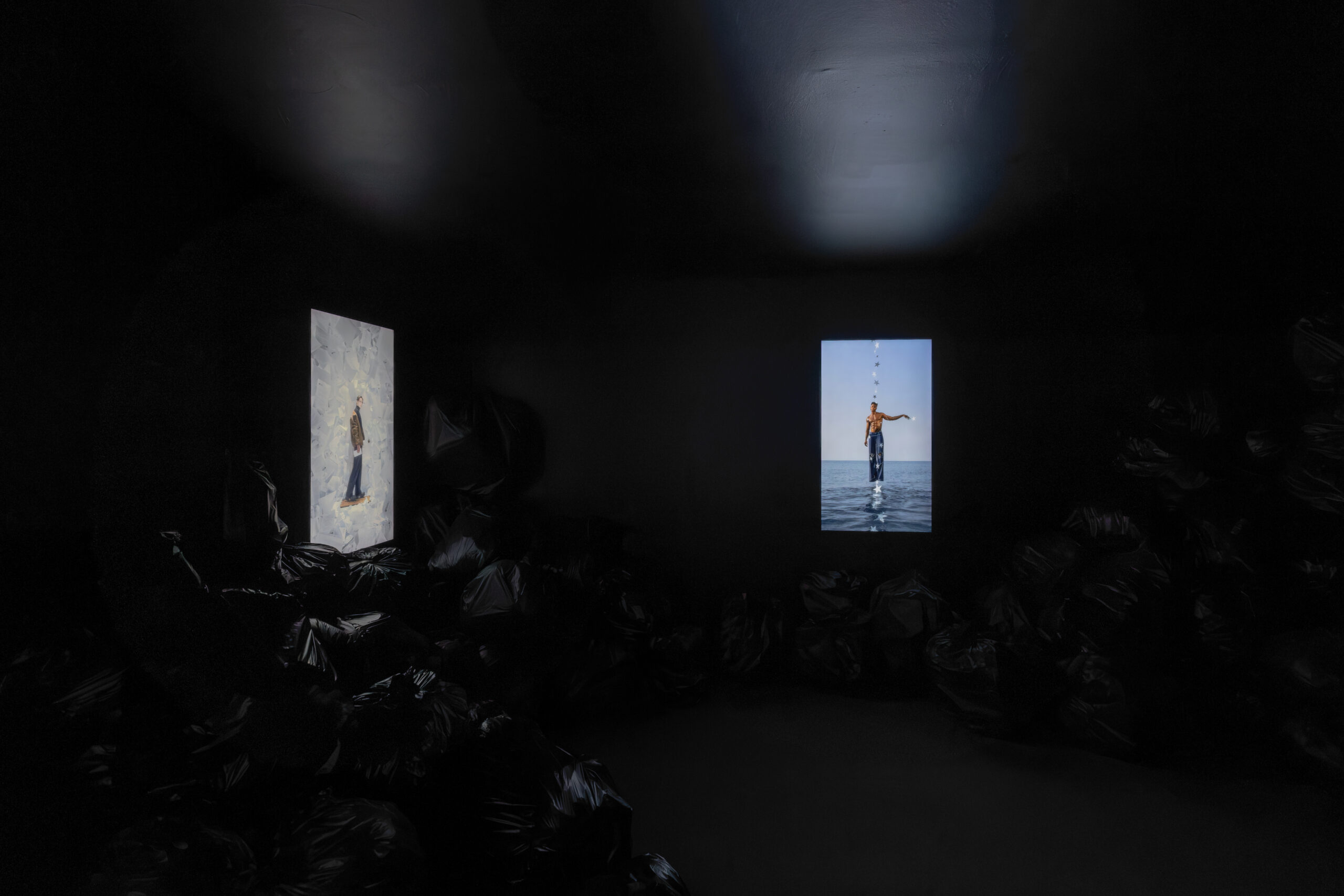 Chairs, hands, water, and the color red recur throughout the exhibition, not as decorative devices, but as vessels of shifting meaning: identity becomes burden, then release; witnesses become narrators; healing coexists with danger; and clarity emerges only through rupture. These works shed light on Elmaz’s deep investment in emotional honesty, nostalgia, and the psychological tensions embedded in creative industries that shape, consume, and sometimes discard those within them.