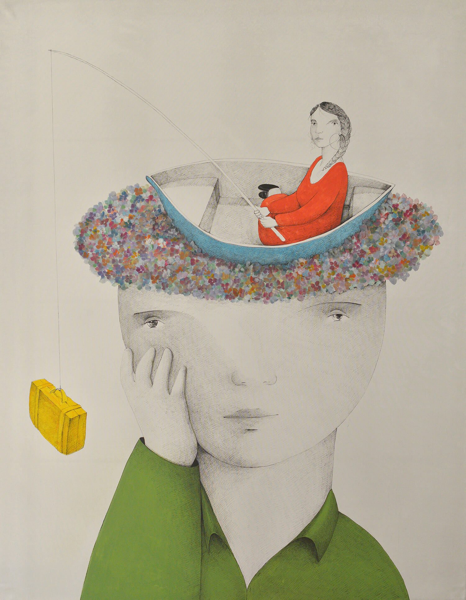Elias Ayoub’s painted figures are embedded in either realistic or dream-like landscapes and depict relationships or emotions. “I work in an expressive symbolic style… dominated by abstract spaces,” he explains.