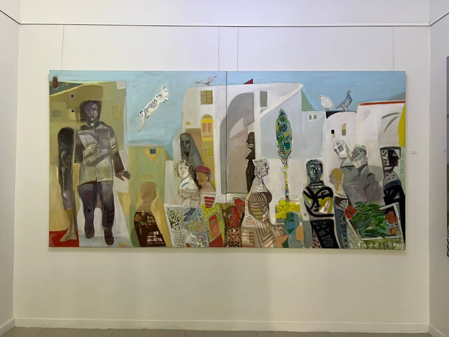 Born in Damascus, Elias Ayoub (1986) graduated from the Department of Painting, Faculty of Fine Arts, Damascus University and obtained a Master’s degree at Kursk State University, Russia. He is currently working on a PhD in the history and philosophy of art at the Surikov Art Institute in Moscow. Working in different styles, his expressive figures and scenes have emotive colours and organic flowing shapes while other works have an angular and geometric approach, or even a combination of both styles together.